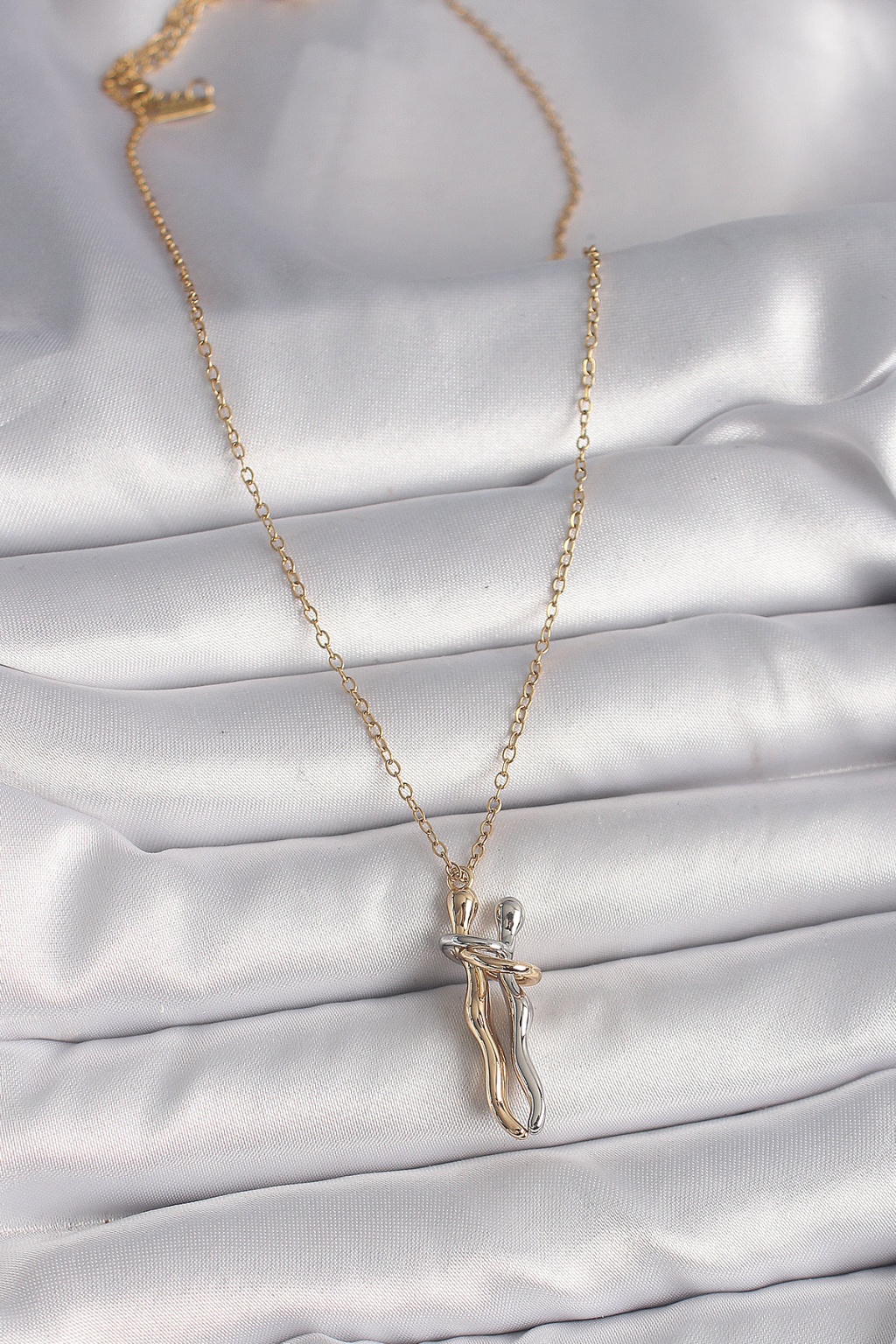 316L Çelik Gold Renk Zincir Renkli Sarılma Model Kadın Kolye - TJ-BKO9765