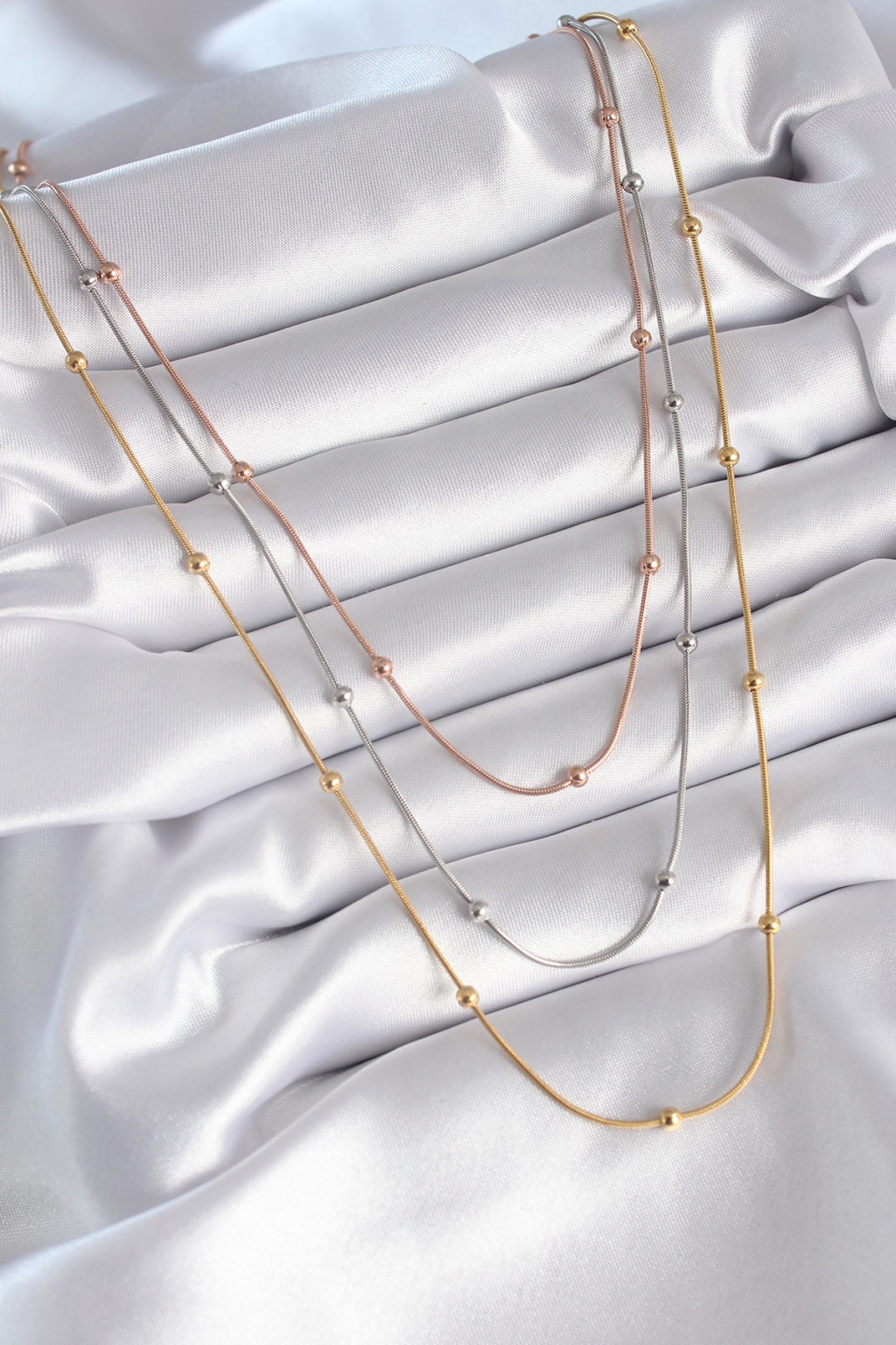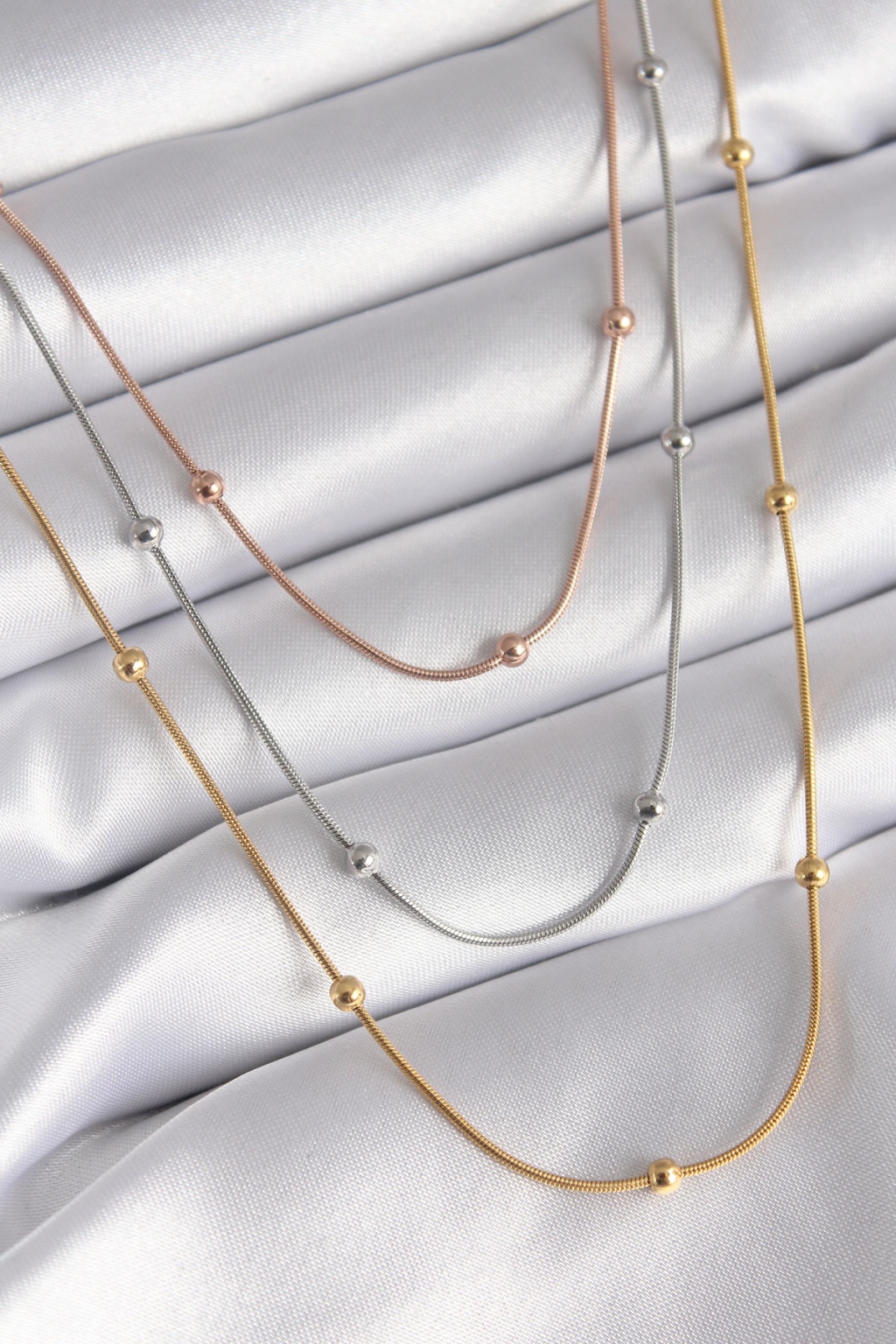 316L Çelik Mix Renk 3'lü Topçuk Detay Kadın Kolye - TJ-BKO8314