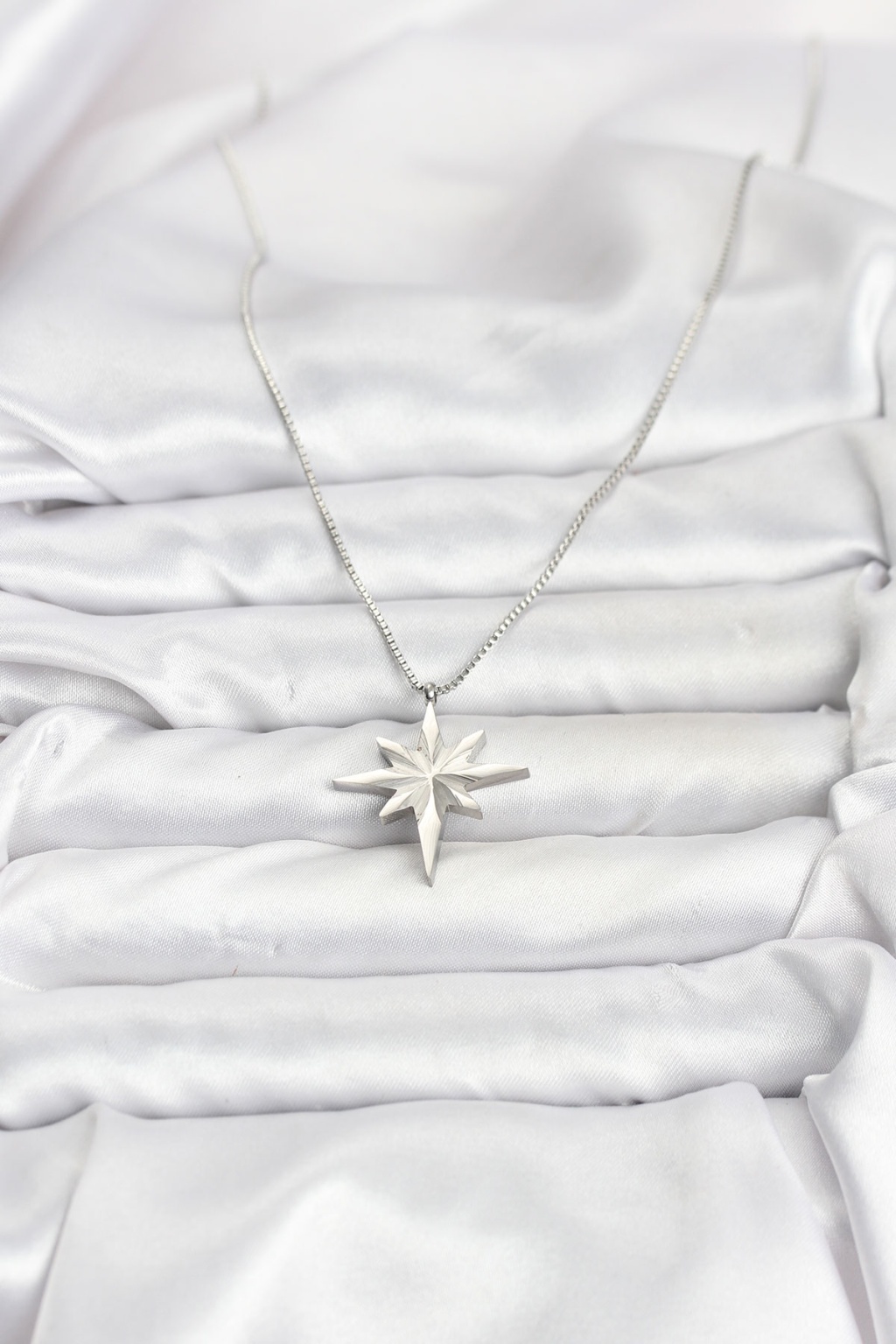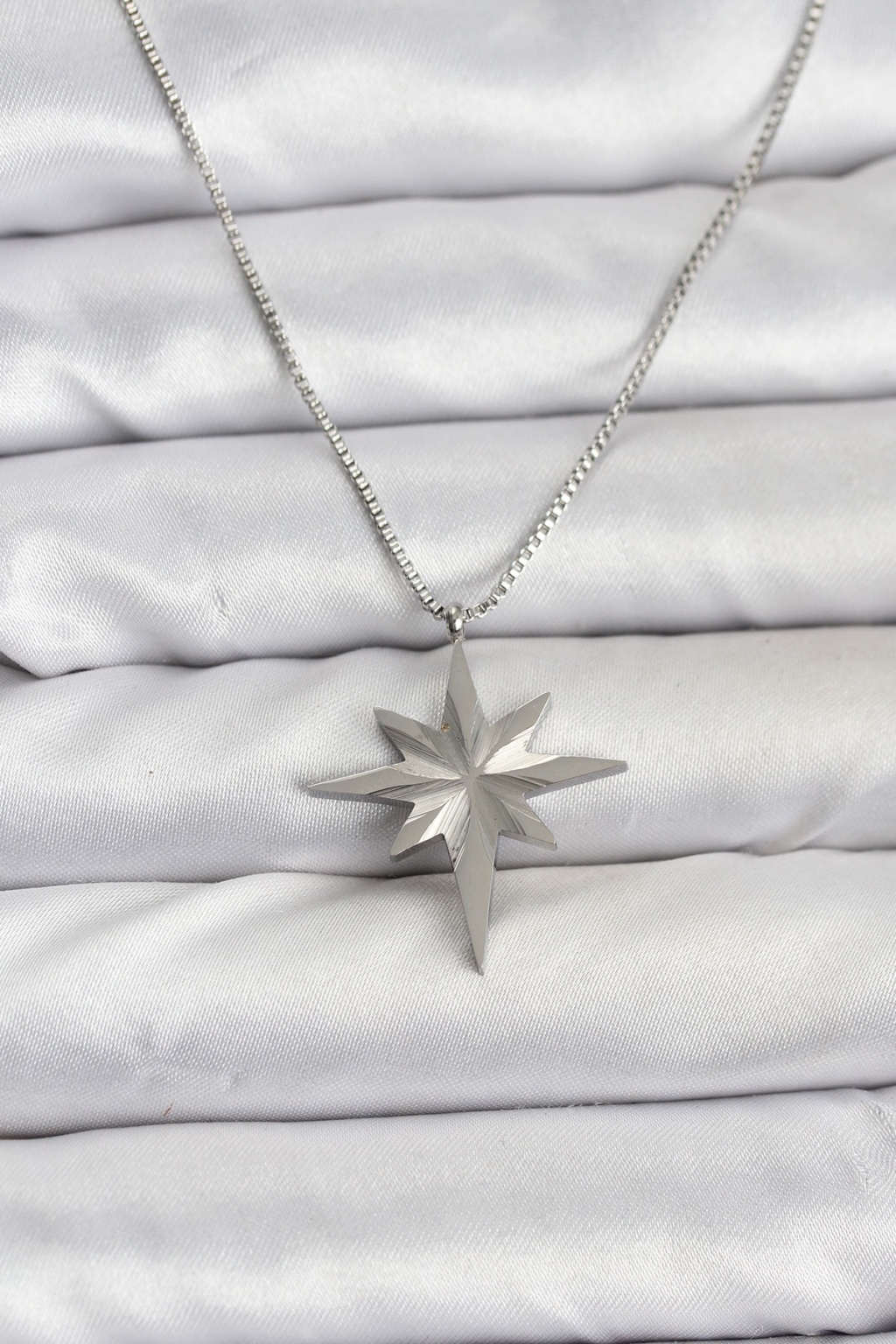 316L Çelik Zincir Gümüş Renk Kutup Yıldızı Model 60 cm Zincir Kadın Kolye - TJ-BKO10758