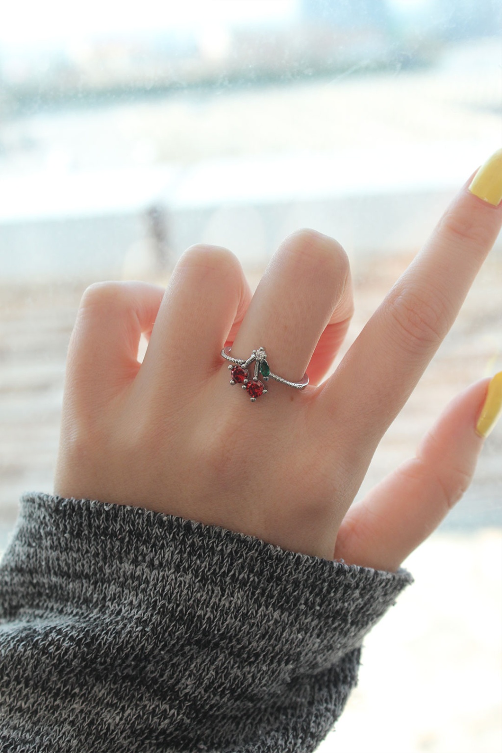 Ayarlamalı Gümüş Renk Kristal Taşlı Kiraz Yüzük - TJ-BYK2269
