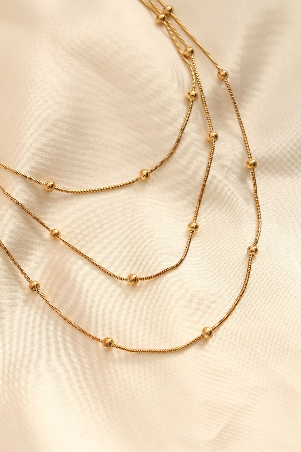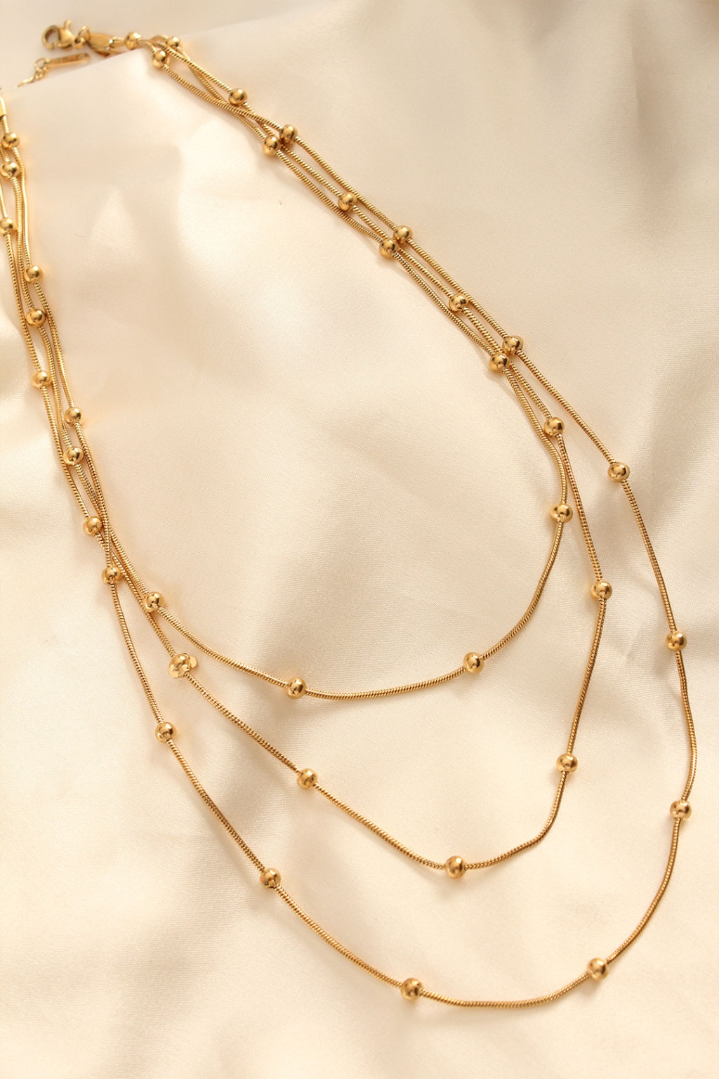 Çelik Altın Renkli Topçuk Tasarımlı Çoklu Kolye - TJ-BKO6243