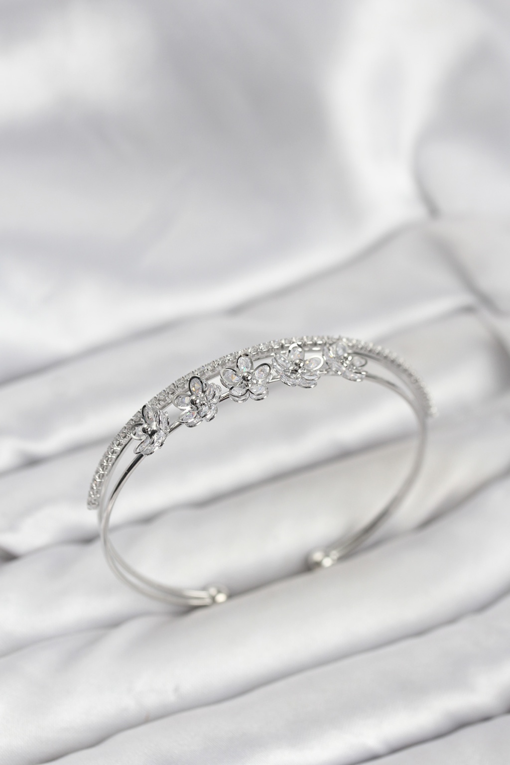 Çiçek Model Pirinç Gümüş Renk Kadın Bileklik - TJ-BB8252