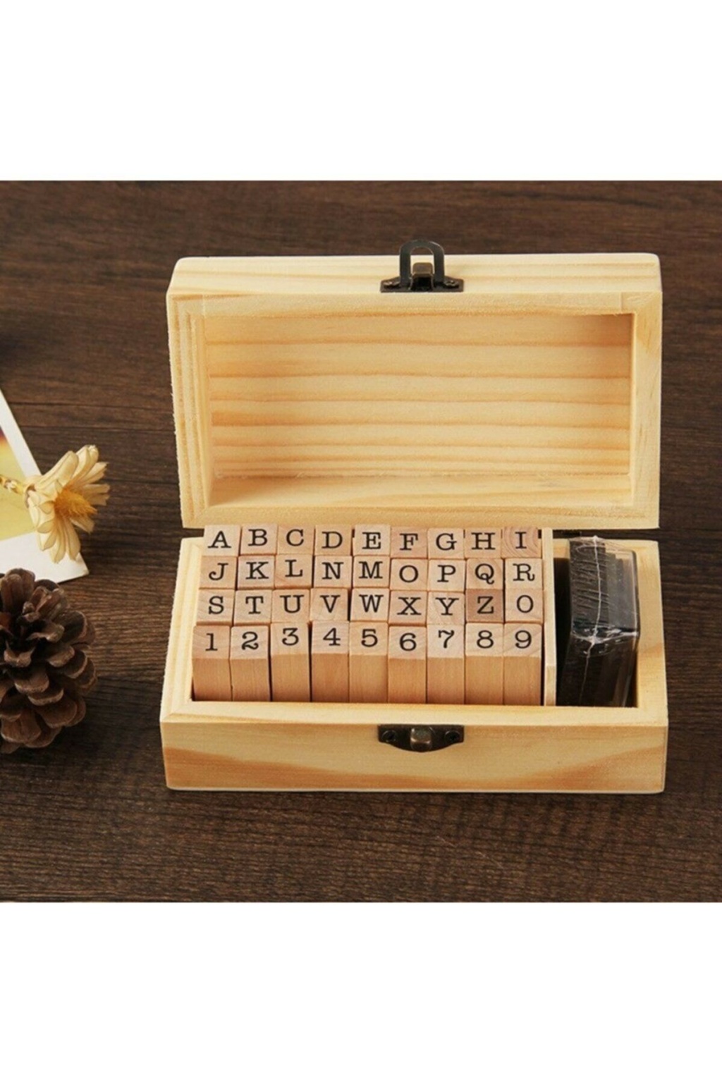 Damga Seti 26 Adet Harf , 10 Adet Rakam , 1 Adet Mürekkep Süngeri Ve Ahşap Kutusuyla Birlikte Toplam 38 Parçadan Oluşmaktadır.