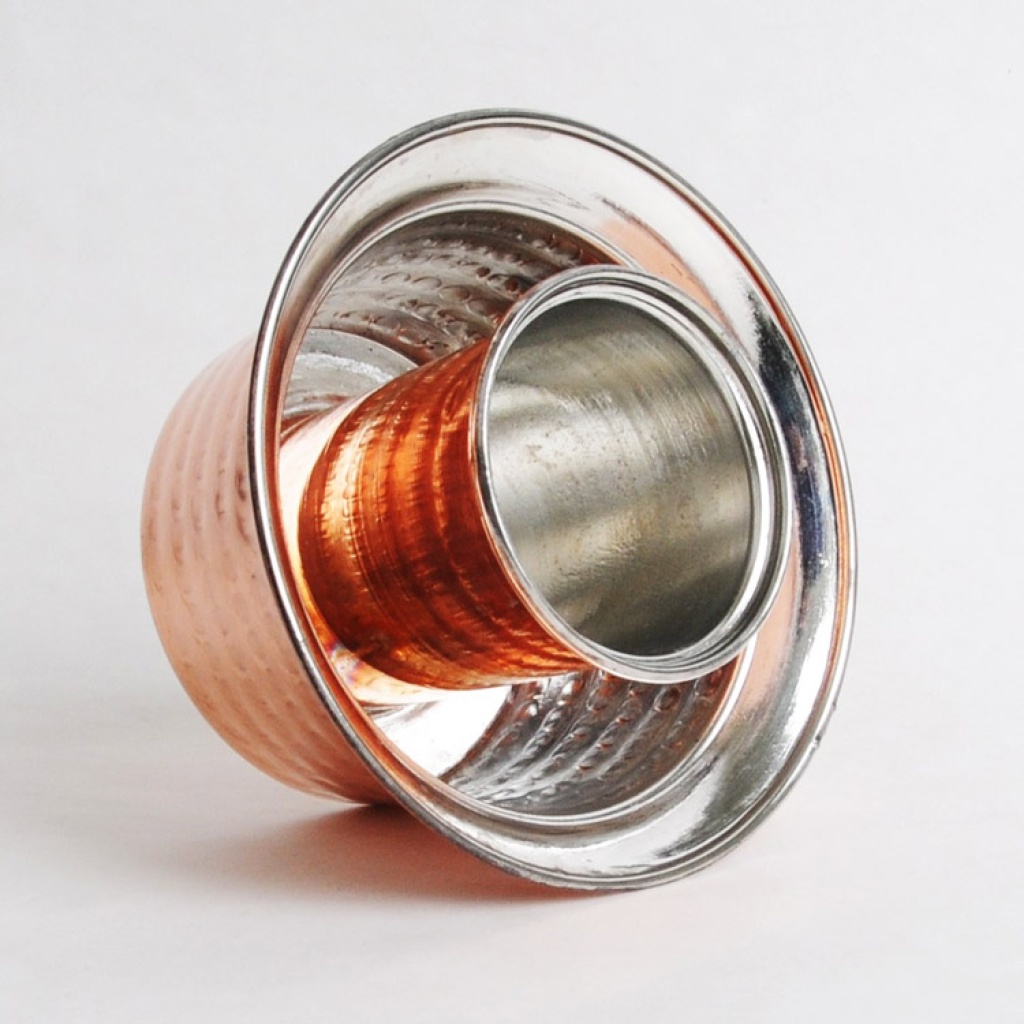 - Malzeme: Dövme bakır. Bakır, mükemmel bir ısı iletkenidir, bu nedenle ehlikeyf içindeki içkinin soğukluğunu uzun süre korur. Ayrıca, dövme bakır el işçiliği ile üretildiği için, her ürün benzersiz bir görünüme sahiptir.