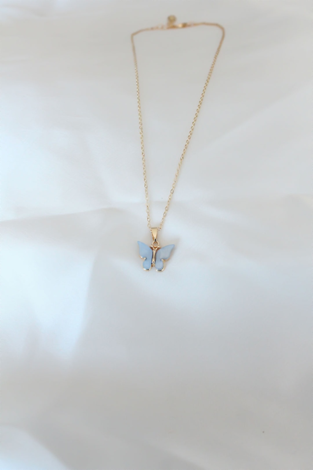 Gold Renk Kaplama Buz Mavisi Renk Sedefli Kelebek Kolye - TJ-BKO6438
