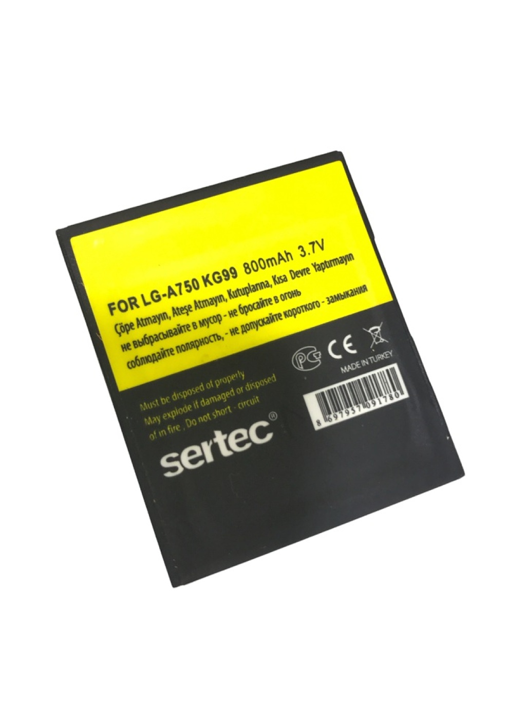 MARKA: SERTECUYUMLU MODELLER: LG-A750 - KG99 Uyumlu BataryaVOLTAJ: 3,7 V.KAPASİTE: 800 mAh.MENŞEİ: ÇİN |
