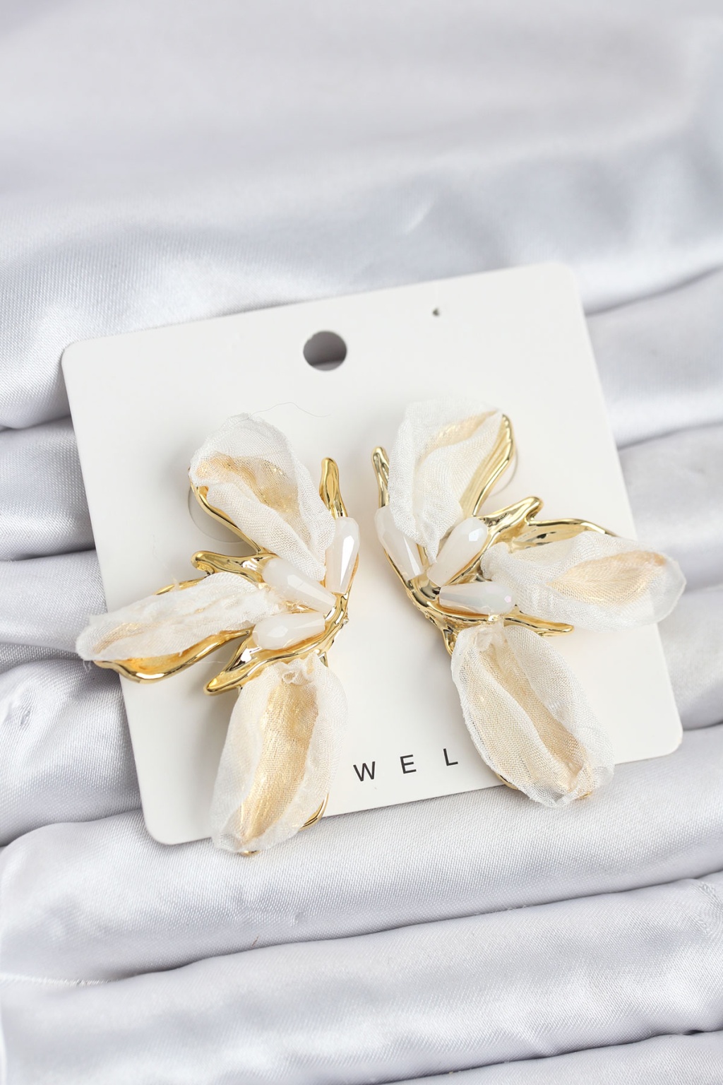 Lotus Model Beyaz Renk Tüllü Kadın Küpe - TJ-BKP11634
