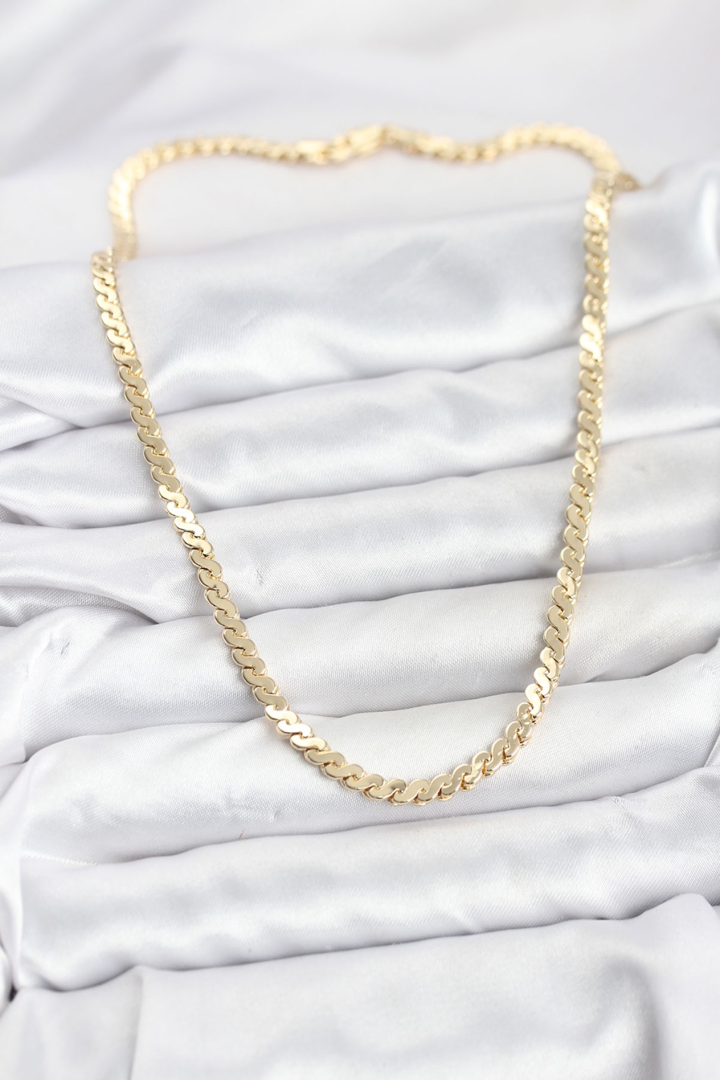 Pirinç Gold Renk Yassı Zincir Kadın Kolye - TJ-BKO10818