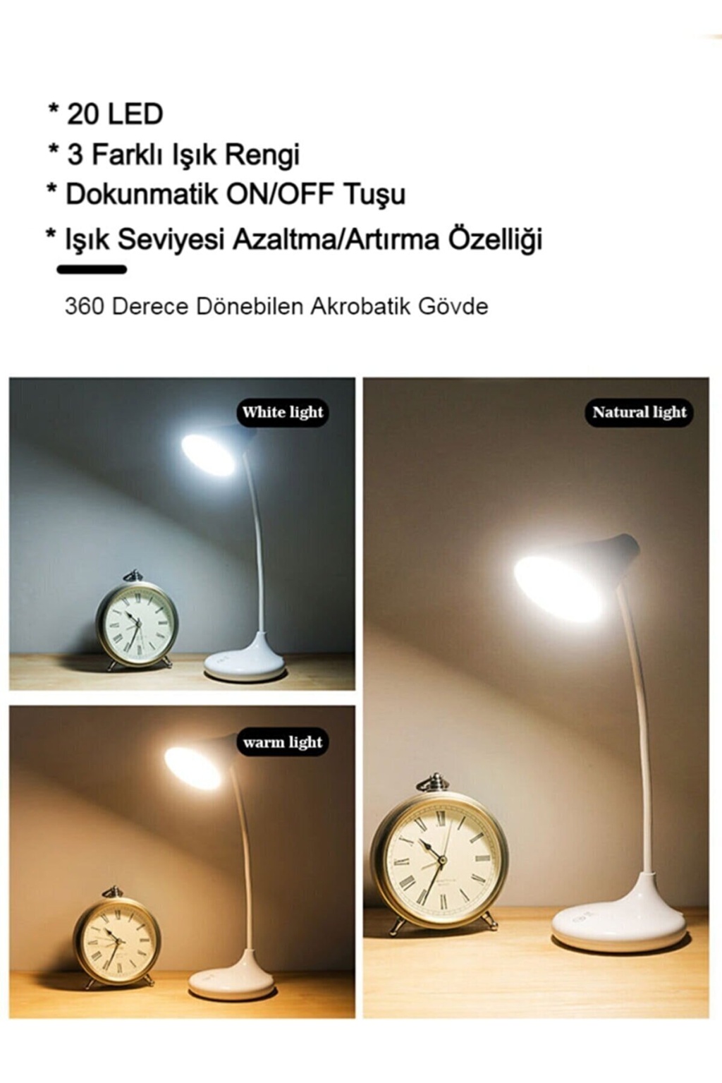 Kontrol Yöntemi: Üç Seviyeli Dokunmatik Karartma Beyaz ışık Sıcak Doğal ışık