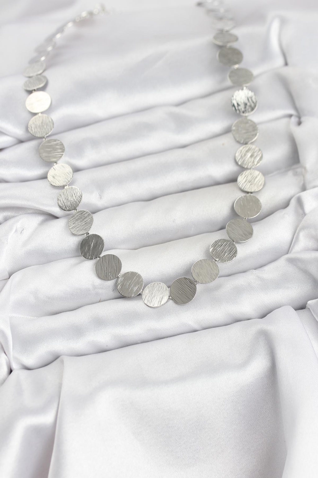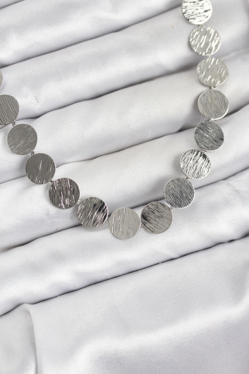 Yuvarlak Plaka Model Gümüş Renk Kadın Kolye - TJ-BKO10826